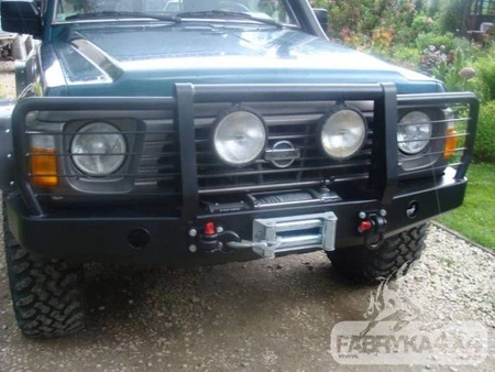 Przedni zderzak z płytą pod wyciągarkę i bullbarem, dedykowany dla samochodu NISSAN PATROL Y60.